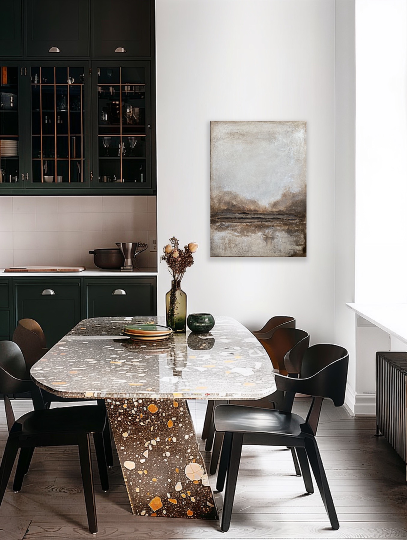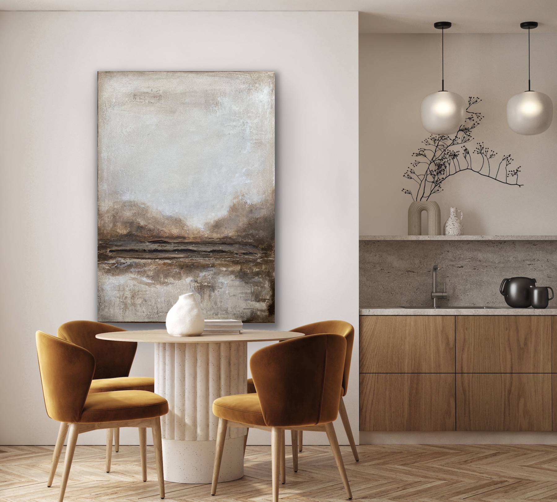 •  Šie darbai kuriami kaip ilgaamžiai interjero akcentai – ramūs, minimalistiniai ir lengvai pritaikomi skirtingose erdvėse.Įkvėpti natūralių akmens paviršių ir tylos, jie suteikia interjerui gylio ir tekstūros, neapkraunant erdvės.Galimi įvairūs dydžiai, darbai kuriami pagal užsakymą.