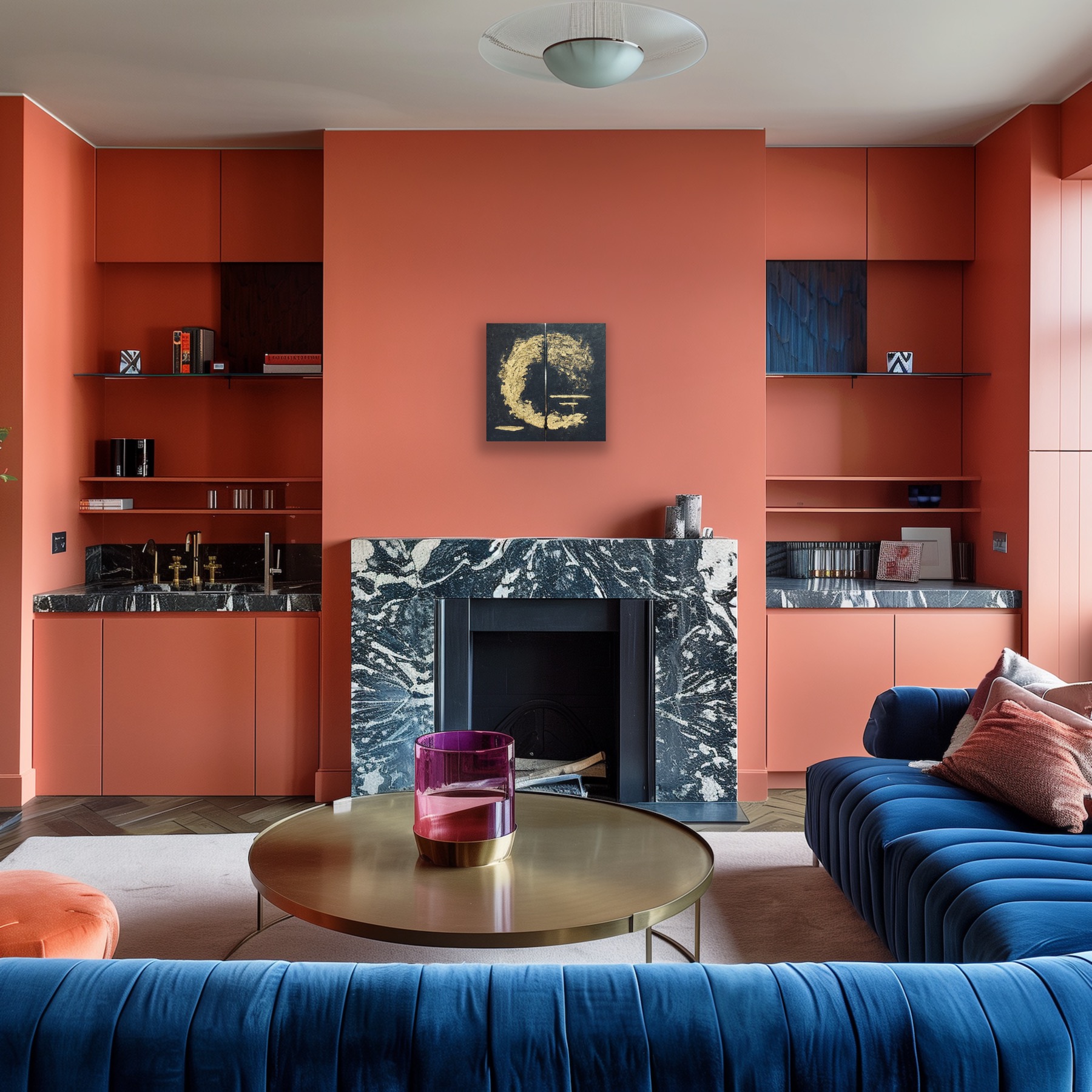 - Tekstūra: Molio tinko technika ir aukso detalės sukuria reljefinį, trimatį efektą, kuris pritraukia dėmesį.